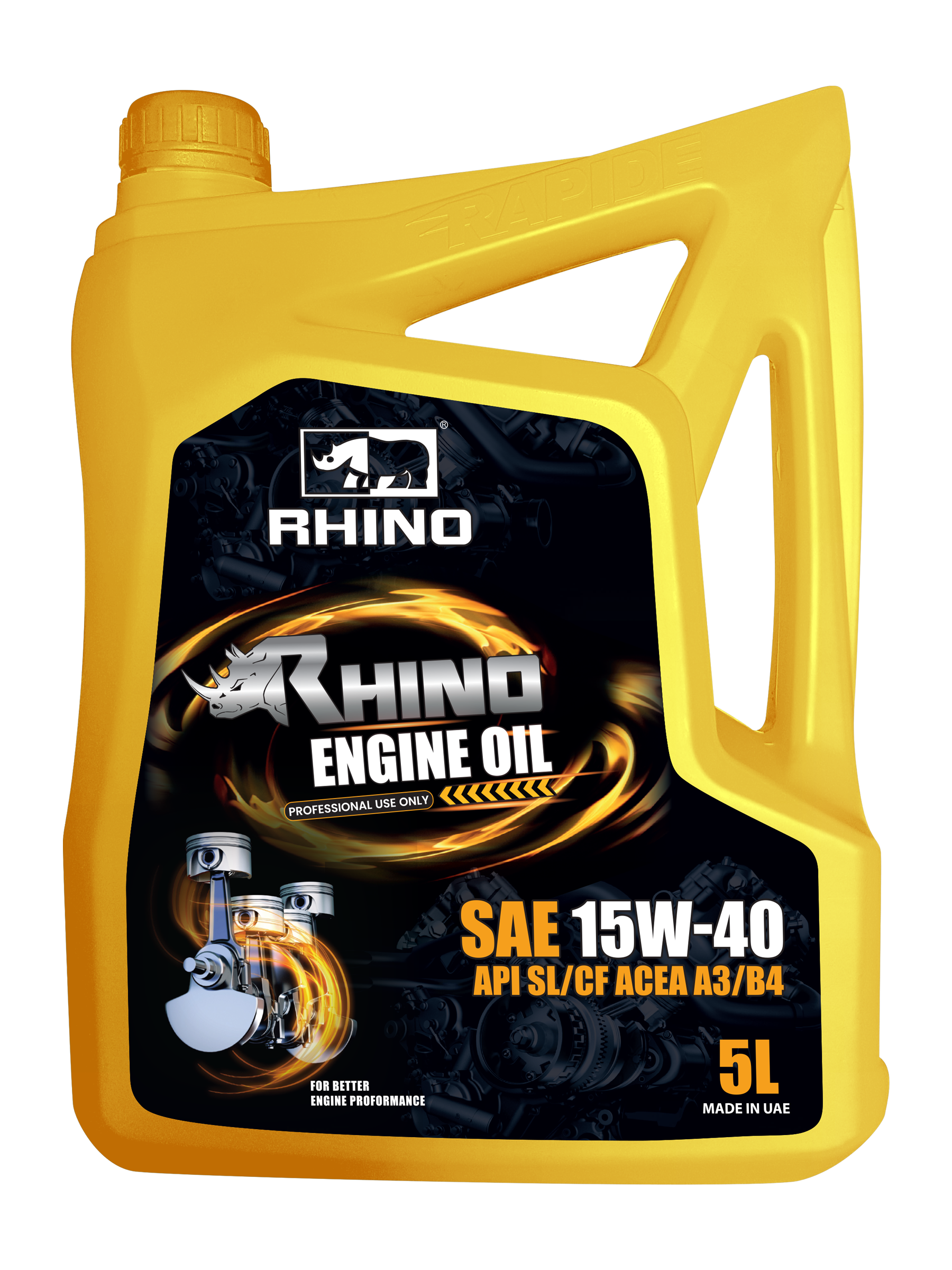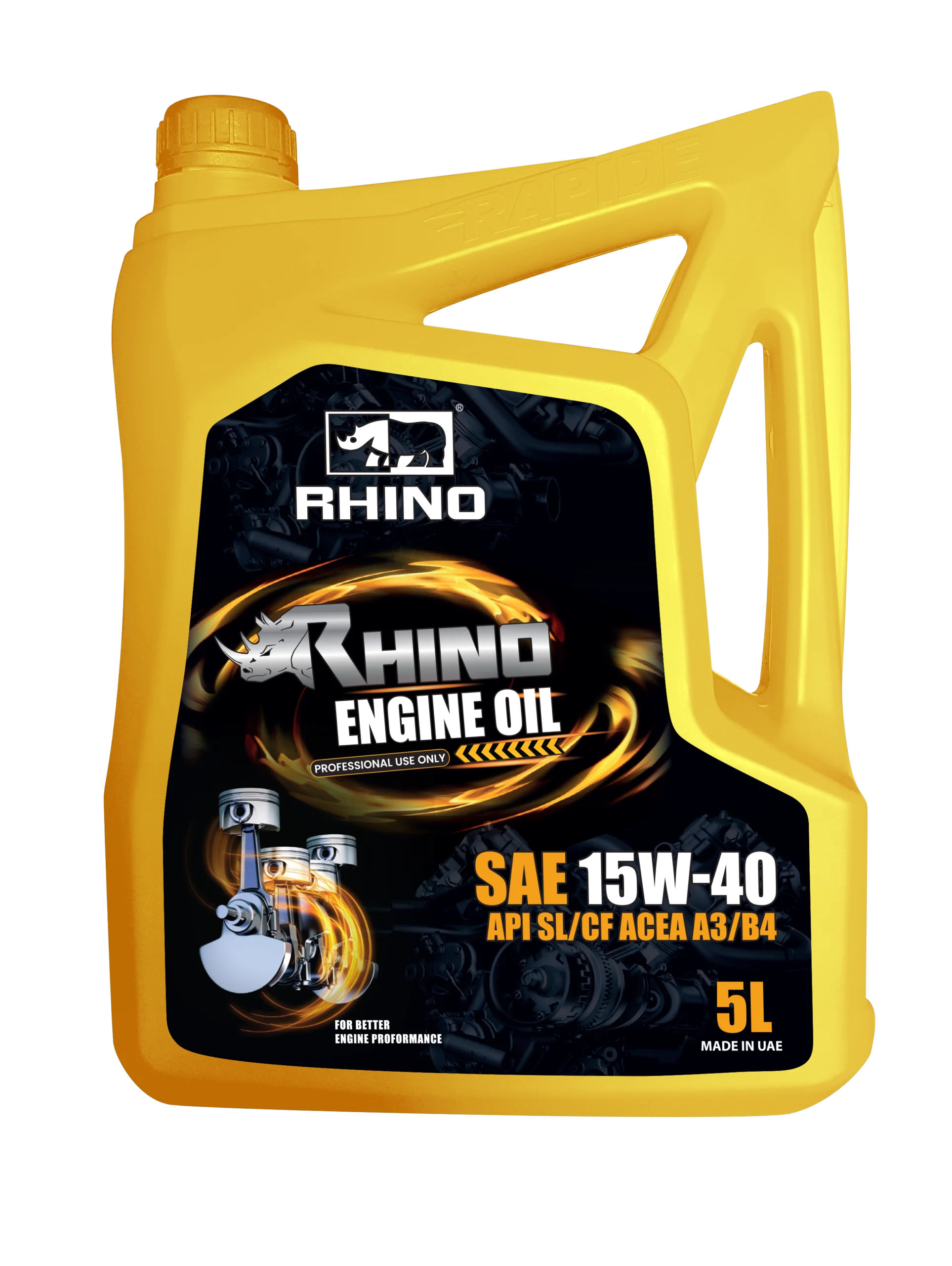 RHINO Engine Oil SAE 15W-40 API SL/CF is a high-performance multigrade engine oil. It is formulated from high-quality base oils combined with modern performance additives. This formulation provides a long engine life and protects critical engine components from lubricant-related failures up to 10,000 km. It also provides engine protection across a wide temperature range.
