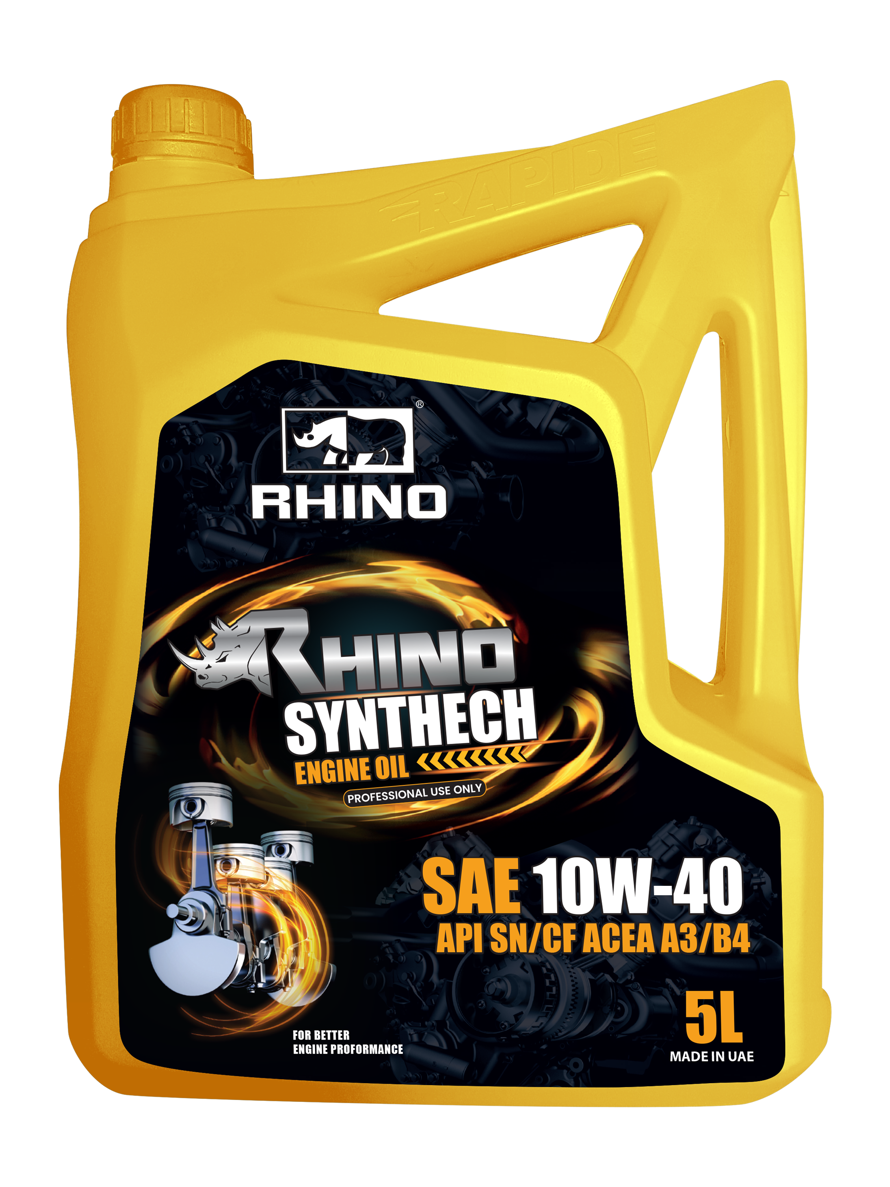 RHINO Synthech Engine Oil SAE 10W-40 API SN/CF A3/B4 is a high-performance synthetic engine oil. It delivers maximum performance and protection. It provides exceptional cleaning power, wear protection, and overall performance to keep your engine running like new under all driving conditions.