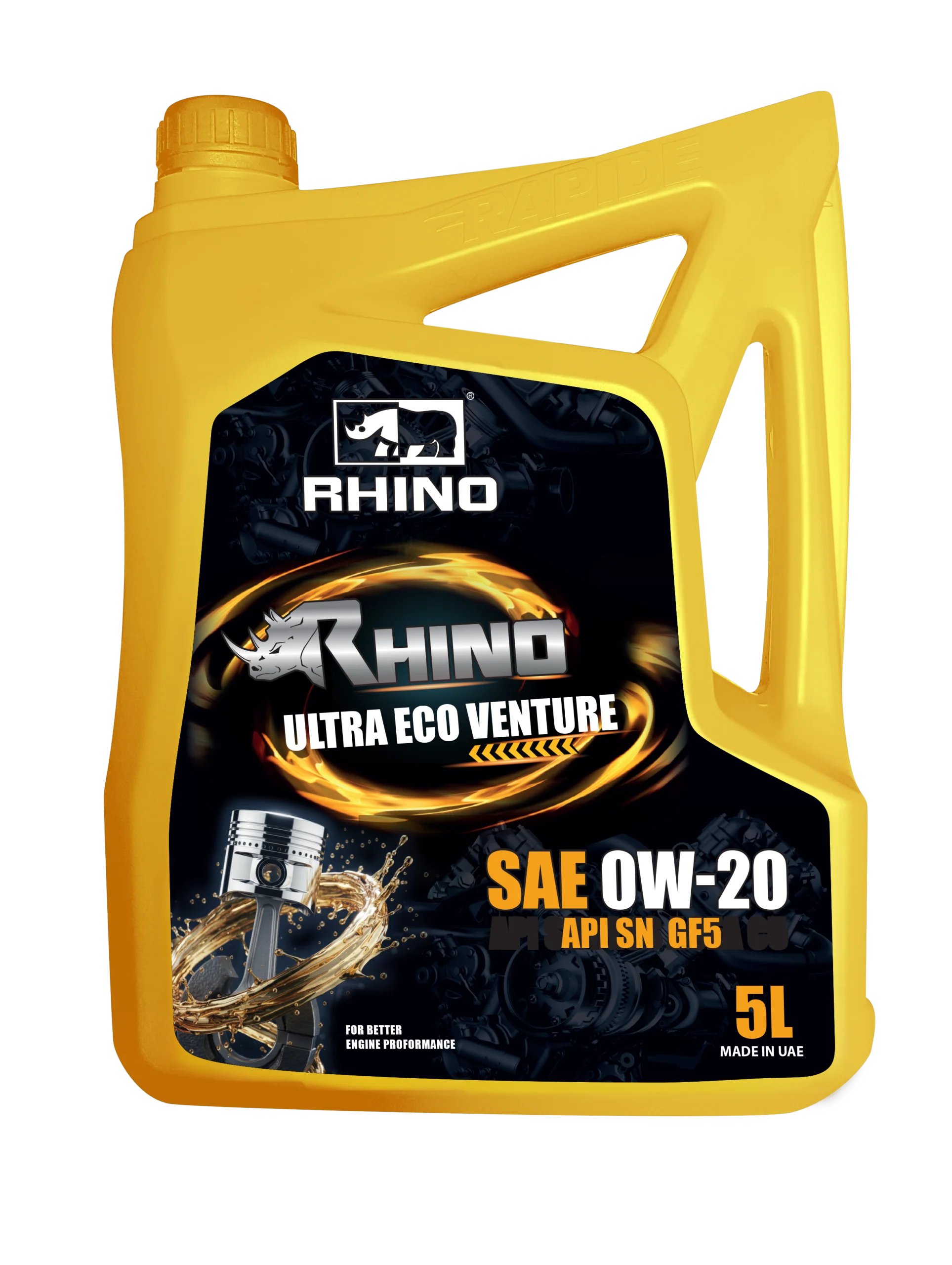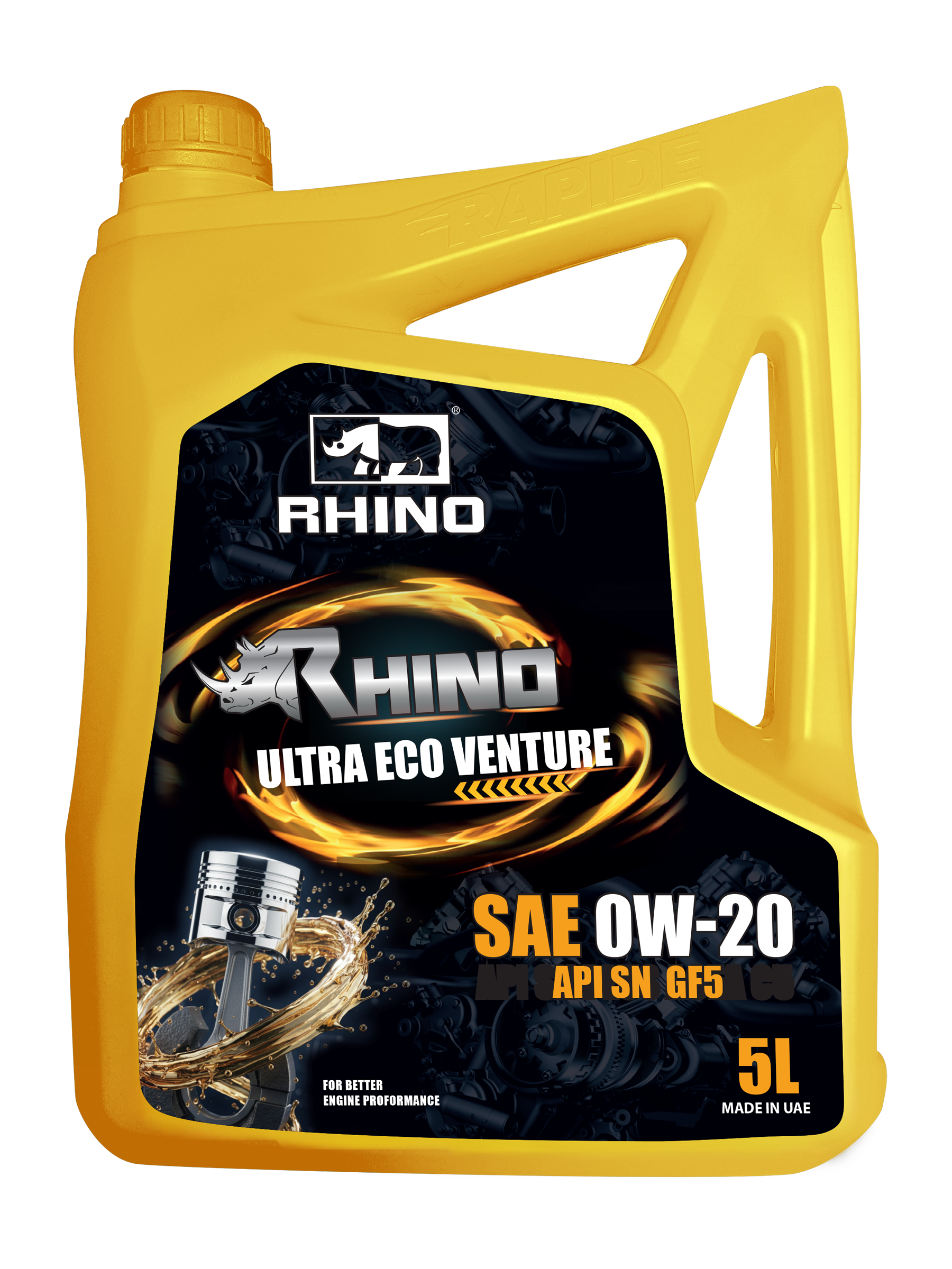 RHINO ULTRA ECO VENTURE ENGINE OIL SAE 0W-20 is formulated from select low-friction, full synthetic base stocks and an advanced technology additive system meeting General Motors Global Engine Oil Specification. It provides excellent oxidation stability, superior resistance to sludge formation and varnish deposits, reduces friction and wear at start-up and protects your engine even under the toughest driving conditions. It is recommended for turbo-charged and high-powered passenger car, truck, sport utility vehicle and other mobile and stationary engines.