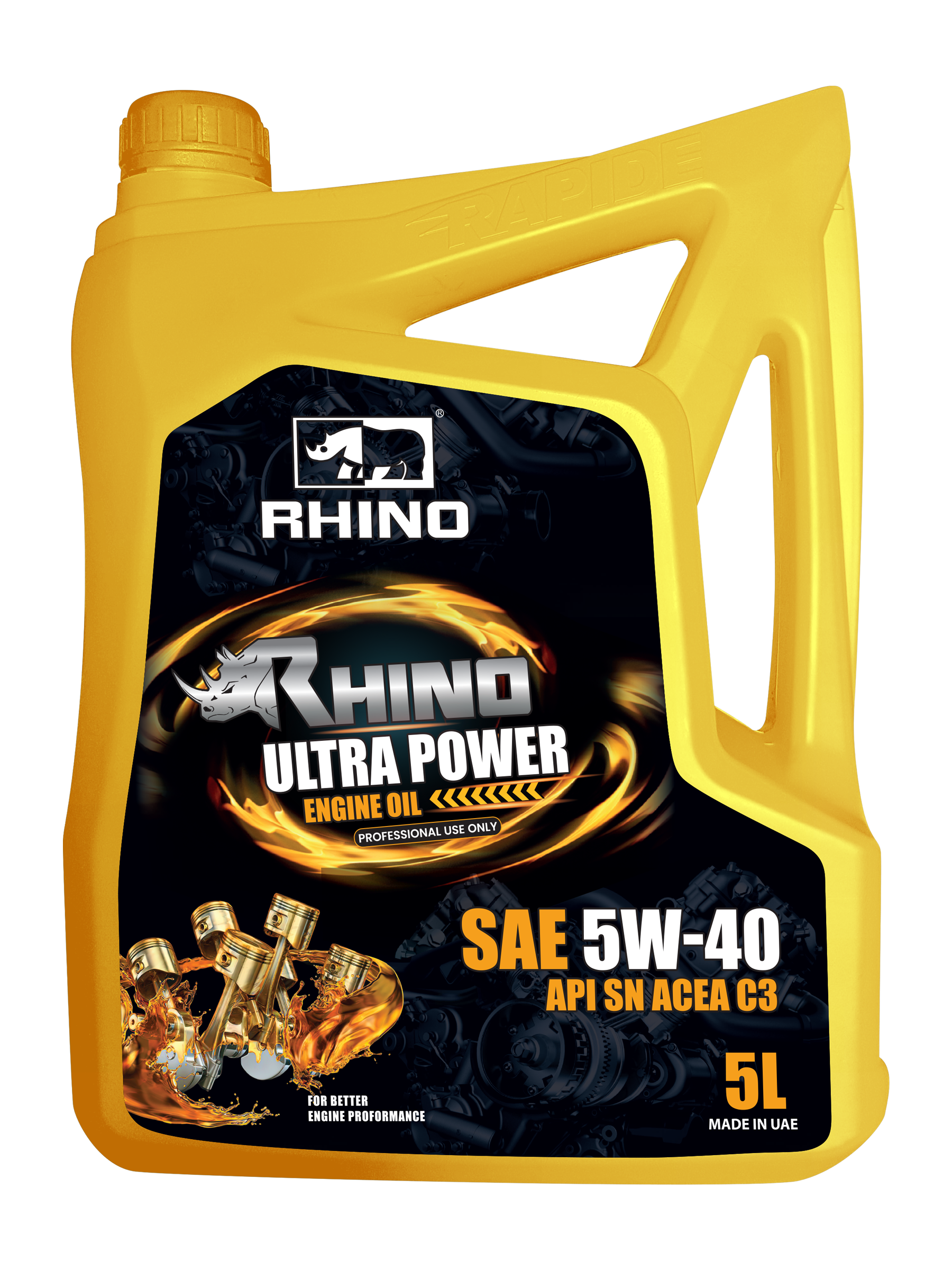 RHINO ULTRA POWER ENGINE OIL SAE 5W-40 API SN C3 are high-performance engine oils specifically developed to provide the greatest fuel economy and lowest CO2 emissions. They are the result of laboratory synthesis of precisely controlled ingredients created by petroleum engineers, scientists, and chemists. When combined with a high-performance additive package, the result is an oil with the highest levels of lubrication and engine protection, generally offering improved start-up protection, enhanced cleaning qualities, increased durability, and better protection against heat buildup.